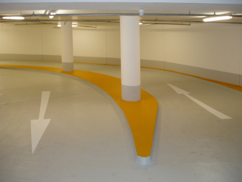 Proiectul a utilizat sistemul de bază format din multipe straturi de rășină epoxidică. Acest sitem este ideal pentru parcări.